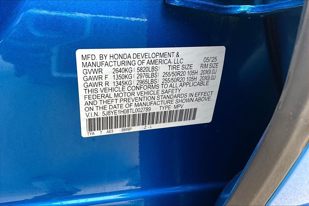 - Front Tire Size: P255/50HR20