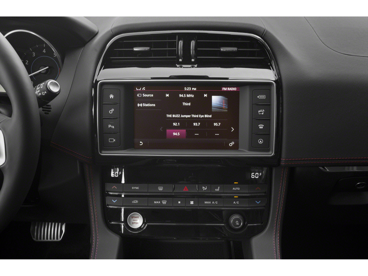 - Radio: Meridian 380W Sound System -inc: 10" touchscreen, HD Radio, InControl Remote (including remote climate control, lock and unlock and beep and flash), InControl Protect (including SOS emergency call, Jaguar optimized assistance call and stolen vehicle locator), analog dials w/central 5" TFT display, USB, 12V socket in center console additional power sockets (auxiliary power socket x2), dynamic volume control, Bluetooth® connectivity and streaming and ECO driving style assistant