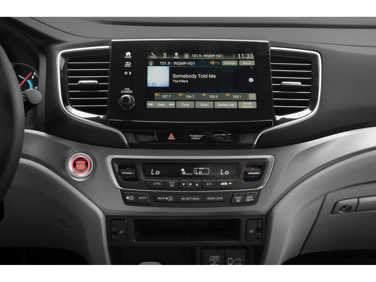 - Radio: 215-Watt Audio System -inc: 7 speakers, subwoofer, 8" display audio w/high-resolution electrostatic touch-screen and customizable feature settings, 2.5-amp USB smartphone/audio interface front console (1 port), Bluetooth® HandsFreeLink, Bluetooth® streaming audio, MP3/auxiliary input jack, Radio Data System (RDS), Speed-Sensitive Volume Compensation (SVC), 2.5-amp USB charging port in center console (1 port) and 2nd row (2 ports), HondaLink, CabinControl remote compatibility, Apple CarPlay integration, Android Auto integration, SMS text message function (Compatible w/select phones w/Bluetooth®, Your wireless carrier's rate plans apply, State or local laws may limit use of texting feature, Only use texting feature when conditions allow you to do so safely.), SiriusXM radio (SiriusXM services require a subscription after any trial period, If you decide to continue your SiriusXM service at the end of your trial subscription, the plan you choose will automatically renew and bill at then-current rates until you call SiriusXM at 1-866-635-2349 to cancel, See our customer agreement for complete terms at www.siriusxm.com, Fees and programming subject to change, XM satellite service is available only to those at least 18 years and older in the 48 contiguous United States and D.C, 2019 Sirius XMRadio Inc, Sirius, XM and all related marks and logos are trademarks of SiriusXM Radio Inc.) and HD Radio