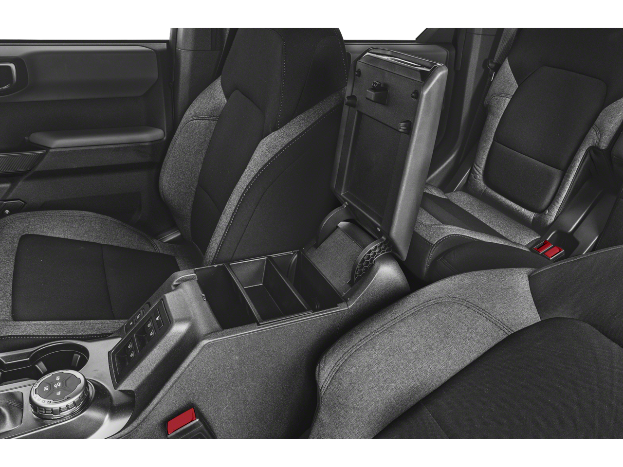 Slip into the comfortable and supportive front row heated seats, and let the dual-zone automatic climate control system keep you and your passengers in perfect comfort, no matter the weather. The ambient footwell lighting and power outlet in the center console add a touch of refined convenience, while the remote start system allows you to warm up the Bronco before you even step inside.