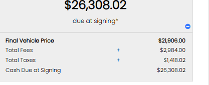 Pre-Owned, Certified, Demo and Loaner Vehicles Prices do not include additional fees and costs of closing, including government fees and taxes, any finance charges, A DOCUMENTARY FEE IS NOT AN OFFICIAL FEE. A DOCUMENTARY FEE IS NOT REQUIRED BY LAW, BUT MAY BE CHARGED TO BUYERS FOR HANDLING DOCUMENTS RELATING TO THE SALE. A DOCUMENTARY FEE MAY NOT EXCEED A REASONABLE AMOUNT AGREED TO BY THE PARTIES. THIS NOTICE IS REQUIRED BY LAW. Any emissions testing fees or other fees. All prices, specifications, and availability subject to change without notice. Contact dealer for most current information