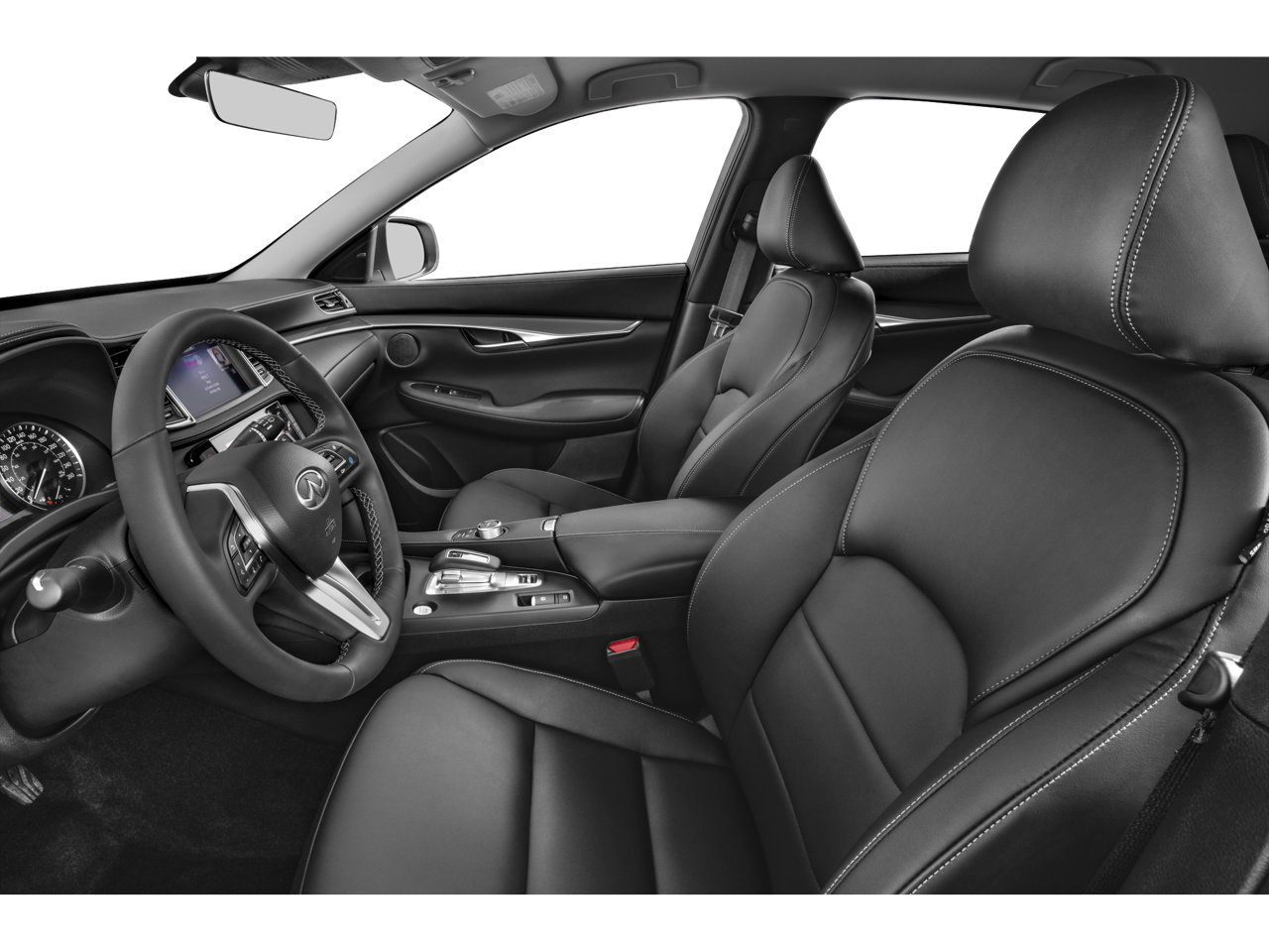 Step inside the QX50 PURE and you'll be greeted by a luxurious and well-appointed interior. The Leatherette Seat Trim provides a touch of elegance, while the Power driver seat and Power passenger seat ensure optimal comfort for both you and your passengers. The Leather steering wheel and Leather Shift Knob add a refined touch, and the 6 Speakers with the HD Audio System provide a premium audio experience.