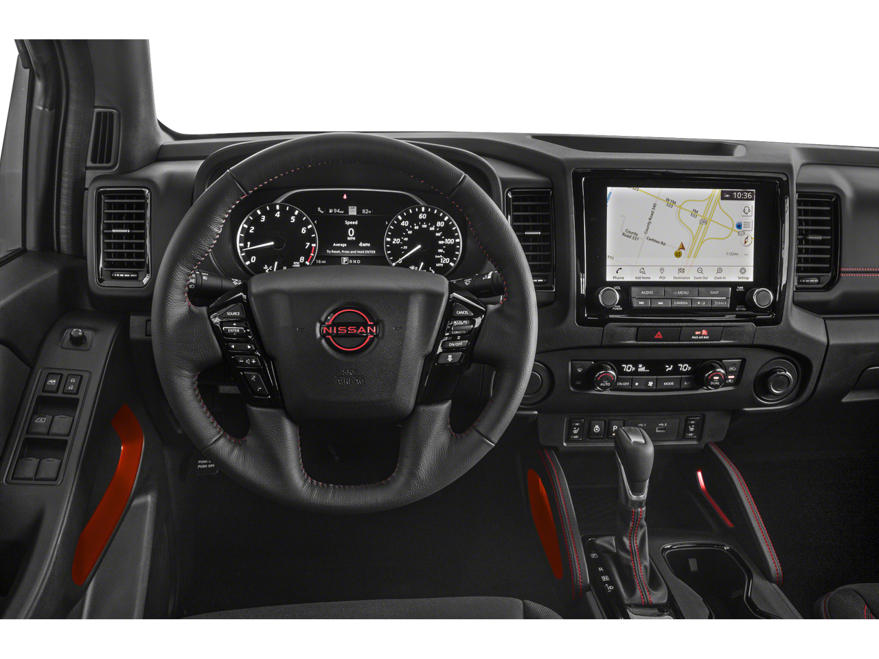Elevate your driving experience with the Frontier PRO-X's impressive array of features. The PRO CONVENIENCE PACKAGE includes convenient amenities like bed under-rail lighting, remote engine starter, and a 120V power outlet in the bed. The PRO-X PREMIUM PACKAGE adds premium audio, an auto-dimming mirror, and a power sunroof, while the TECHNOLOGY PACKAGE offers advanced safety features like blind spot warning, rear automatic braking, and intelligent cruise control.