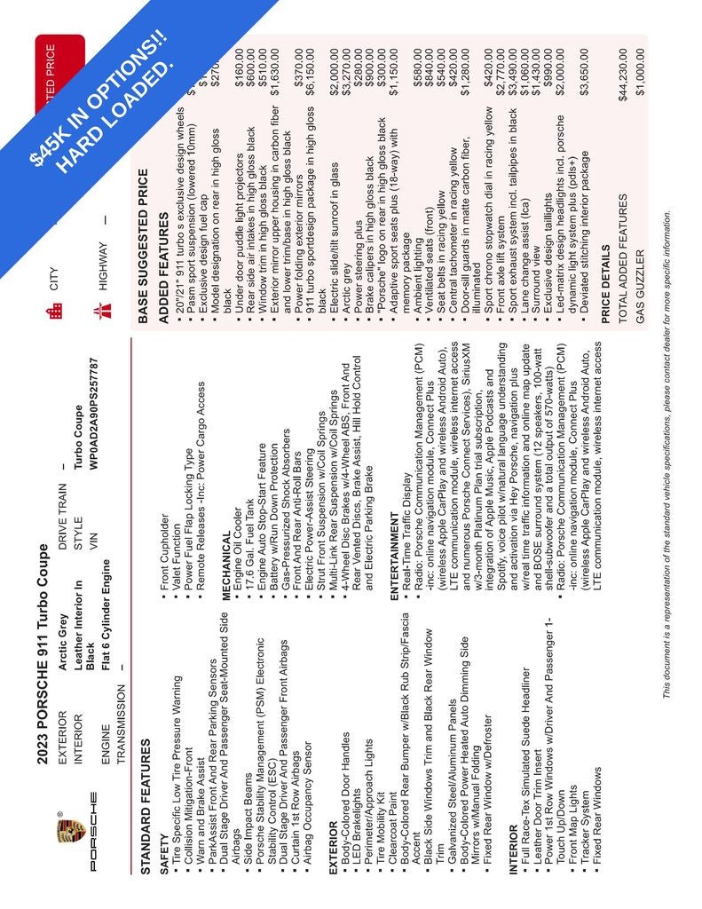 - Wheels: 20" Front/21" Rear 911 Turbo