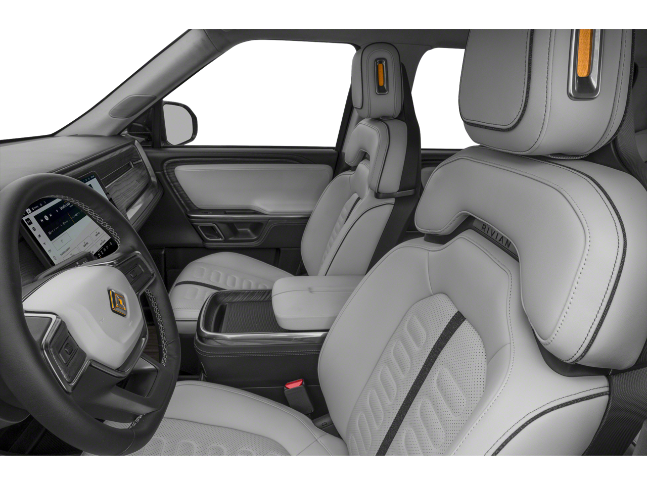 Slip behind the wheel and immerse yourself in the R1S Adventure's luxurious cabin, where premium Vegan Leather seating with patterned stitching and a heated and ventilated front row create an unparalleled level of comfort. The expansive 7-seat interior provides ample space for passengers and cargo, ensuring that every journey is tailored to your needs.