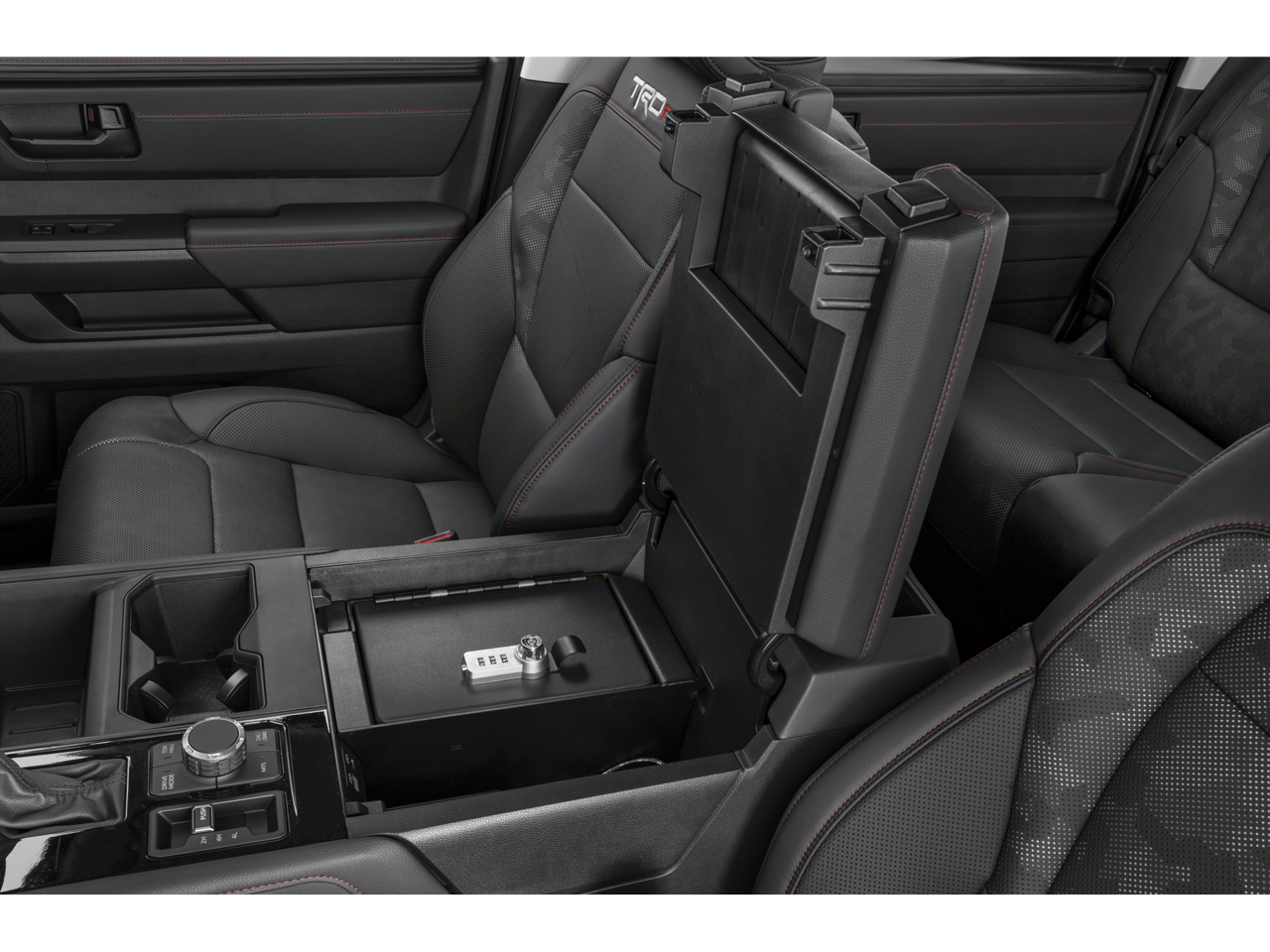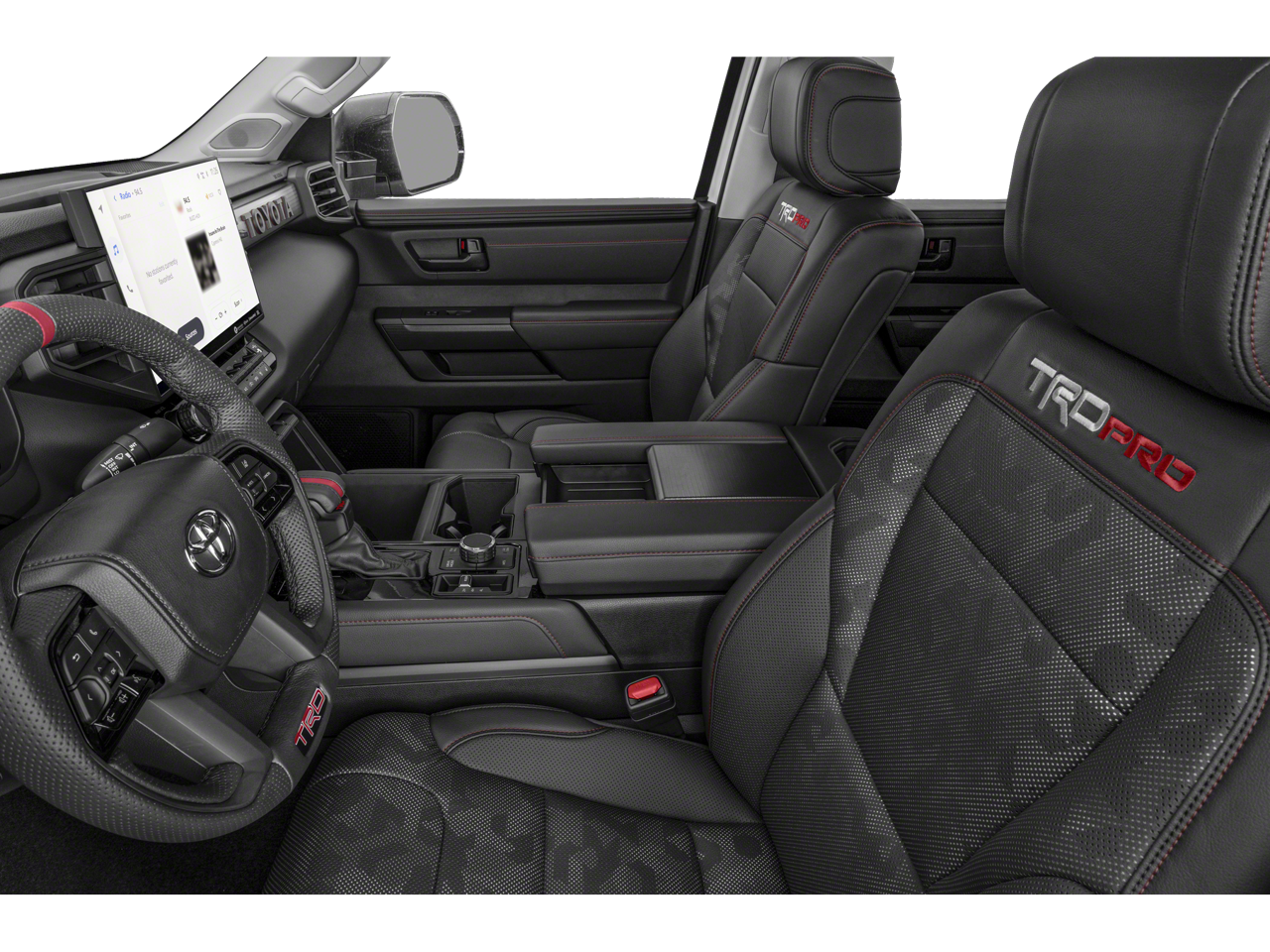 Safety is paramount in the Tundra Hybrid TRD Pro, with a comprehensive suite of advanced driver-assistance technologies, including Blind Spot Warning/Intervention, Lane Departure Warning/Prevention, and Pre-Collision Warning/Prevention. Rest assured, you and your loved ones will be protected on the road.