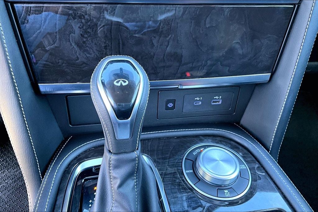 - Radio: Bose Premium Audio System w/13 Speakers -inc: driver's audio stage, speed-sensitive volume control, INFINITI InTouch 12.3" interactive display, INFINITI InTouch services (1-year premium trial and 5-year select trial), INFINITI navigation w/lane guidance and 3D building graphics, MapCare w/over-the-air update compatibility (5-year trial period), premium traffic w/live traffic information (5-year trial period), TomTom weather (5-year trial period), HD radio technology, Apple CarPlay w/wireless Apple CarPlay integration, Android Auto, Siri Eyes Free, Wi-Fi hotspot (30-day or 1GB trial, whichever comes first), Alexa built-in, SiriusXM radio (3-month trial period), SiriusXM Traffic (3-month trial period), SiriusXM Travel Link (3-month trial period): weather, fuel prices, stock prices, sports scores, movie listings and parking, over-the-air head unit update capability (5-year trial period), INFINITI Voice recognition for audio, navigation, Bluetooth® and vehicle information, Bluetooth® hands-free phone system and streaming audio, hands-free text messaging assistant, 2x USB ports for compatible devices for audio streaming and wireless phone charger